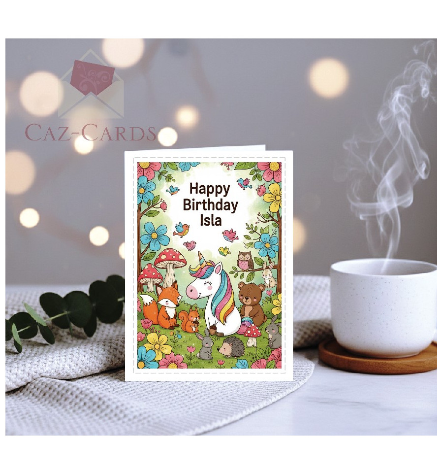 Birthday Card - unicorn and animals